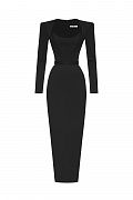 Платье длины миди. Футлярный крой подчёркивает фигуру, а продуманные конструктивные элементы создают эффект скульптурности. Длинные рукава и четко очерченные плечи придают образу силу и элегантность, в то время как мягкая линия выреза вносит нотку утончённой чувственности. Минималистичный дизайн позволяет платью быть универсальной основой как для вечернего выхода, так и для статусного дневного мероприятия. Состав:68% вискоза, 27% нейлон, 5% эластан; подкладка: 95% полиэстер, 5% эластан