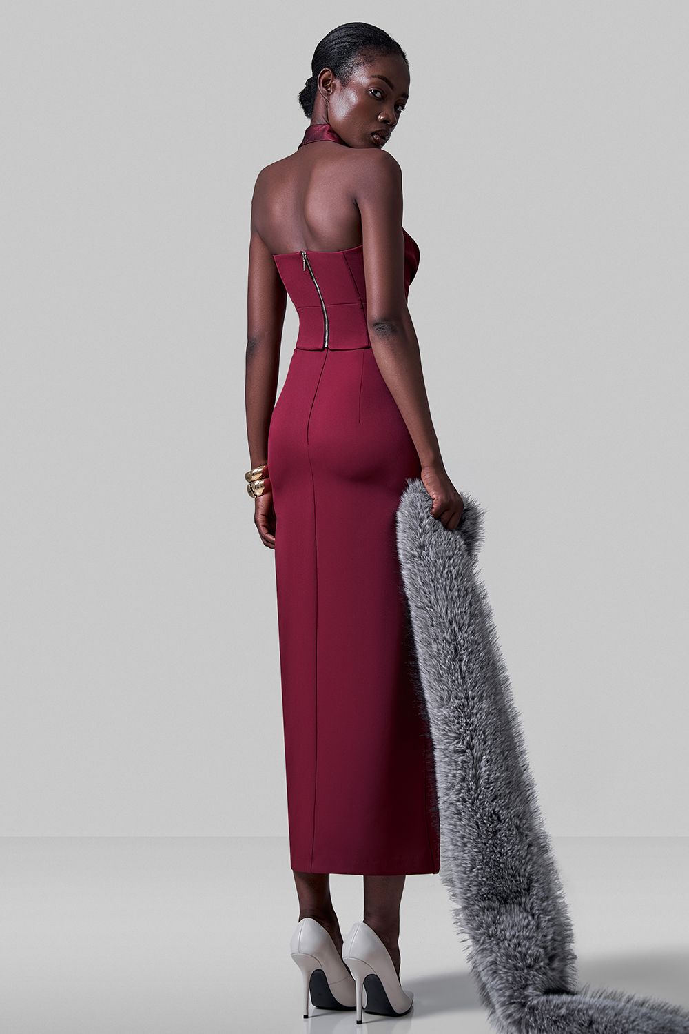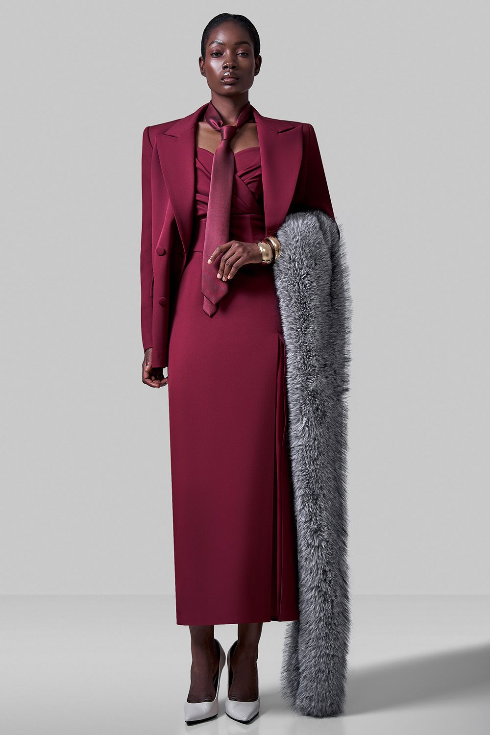 Элегантная юбка миди из плотного костюмного материала — воплощение сдержанной роскоши. Лаконичный силуэт подчёркивает фигуру, а высокое расположение талии визуально вытягивает силуэт. Глубокий разрез на бедре добавляет образу нотку женственности и делает посадку более комфортной при движении.Состав: 97% полиэстер, 3% спандекс, подкладка 95% полиэстер, 5% эластан