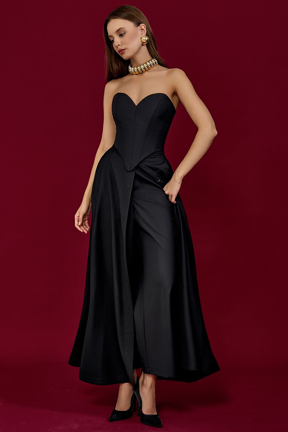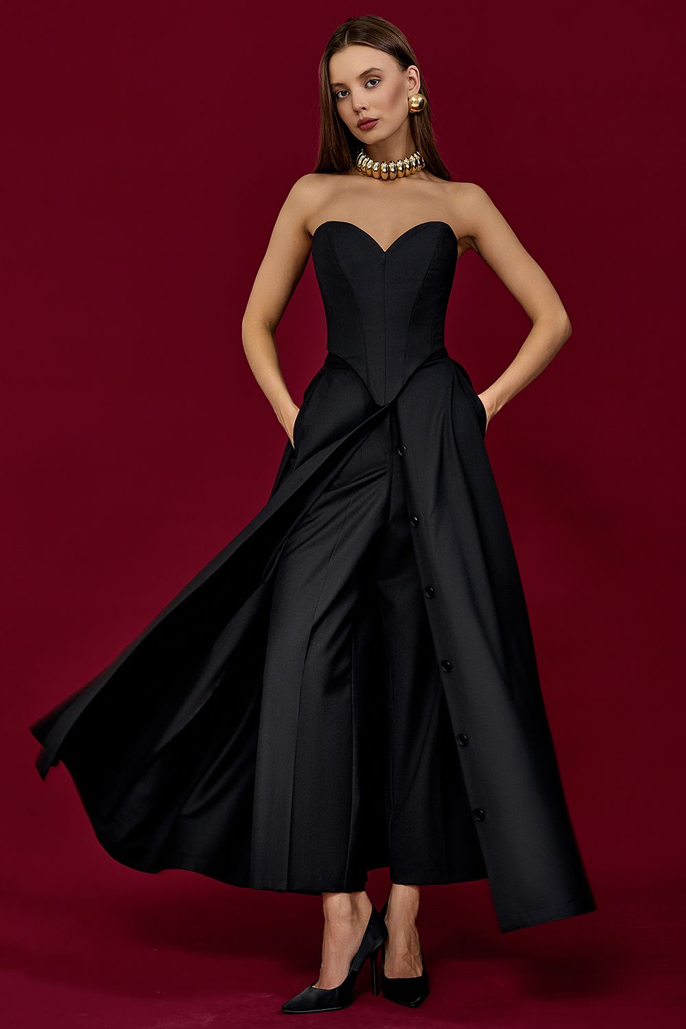 Элегантные юбка-брюки, выполненные из костюмной ткани, станут стильной альтернативой классическому платью или юбке. Модель имеет завышенную талию и акцентированный лиф с корсетной посадкой, который красиво подчёркивает силуэт. Благодаря крою клёш создаётся эффект длинной юбки, но при этом сохраняется комфорт и свобода движения брюк. Состав: 63% вискоза, 32% полиэстер, 5% эластан