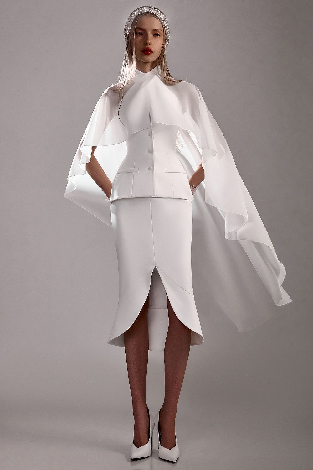 Юбка миди с архитектурной асимметрией подчёркивает силуэт и создаёт эффект лёгкого движения при каждом шаге. Фигурная линия низа и деликатный фронтальный разрез добавляют образу динамику, сохраняя его сдержанность. Приталенная посадка акцентирует талию и визуально вытягивает пропорции. Идеальна в комплекте с топами и жакетами в эстетике modern tailoring. Состав:71% полиэстер, 23% вискоза, 6% эластан, Подклад 95% полиэстер 5% эластан