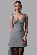 Мини-юбка из плотной костюмной ткани с едва заметным рисунком «ёлочка». Лаконичный А-силуэт подчёркивает талию и визуально вытягивает силуэт, создавая утончённый образ. Посадка — на талии, застёжка аккуратно интегрирована в боковой шов. Идеально сочетается с корсетом и жакетом из той же ткани, формируя элегантный и современный total look. Состав: 75% полиэстер, 25% вискоза, Подклад 95% полиэстер, 5% эластан