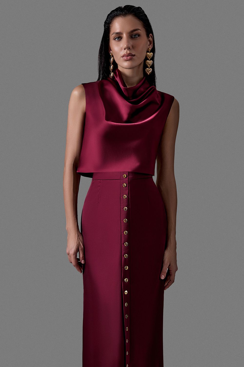 Прямая юбка макси с разрезом и золотистой линией пуговиц