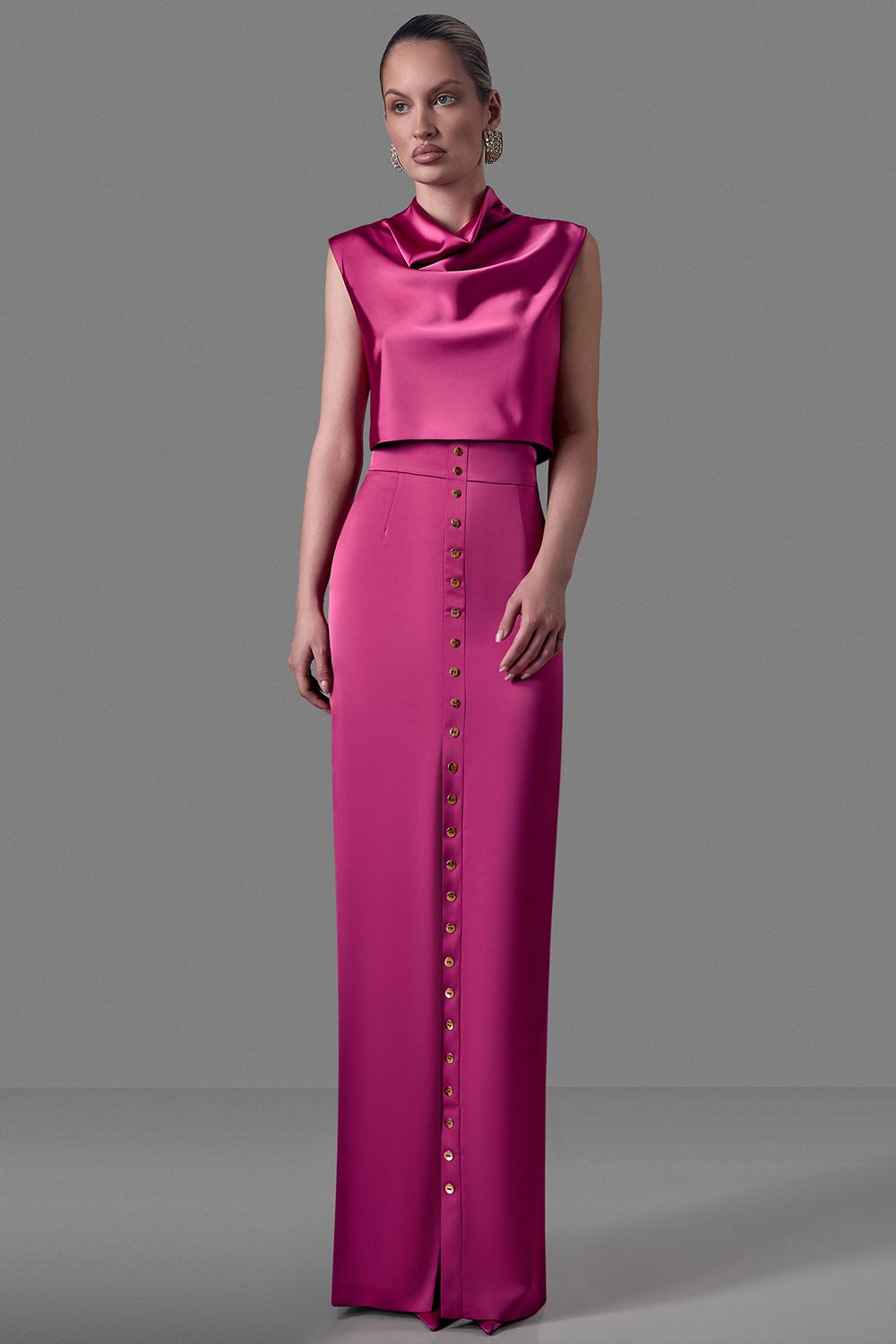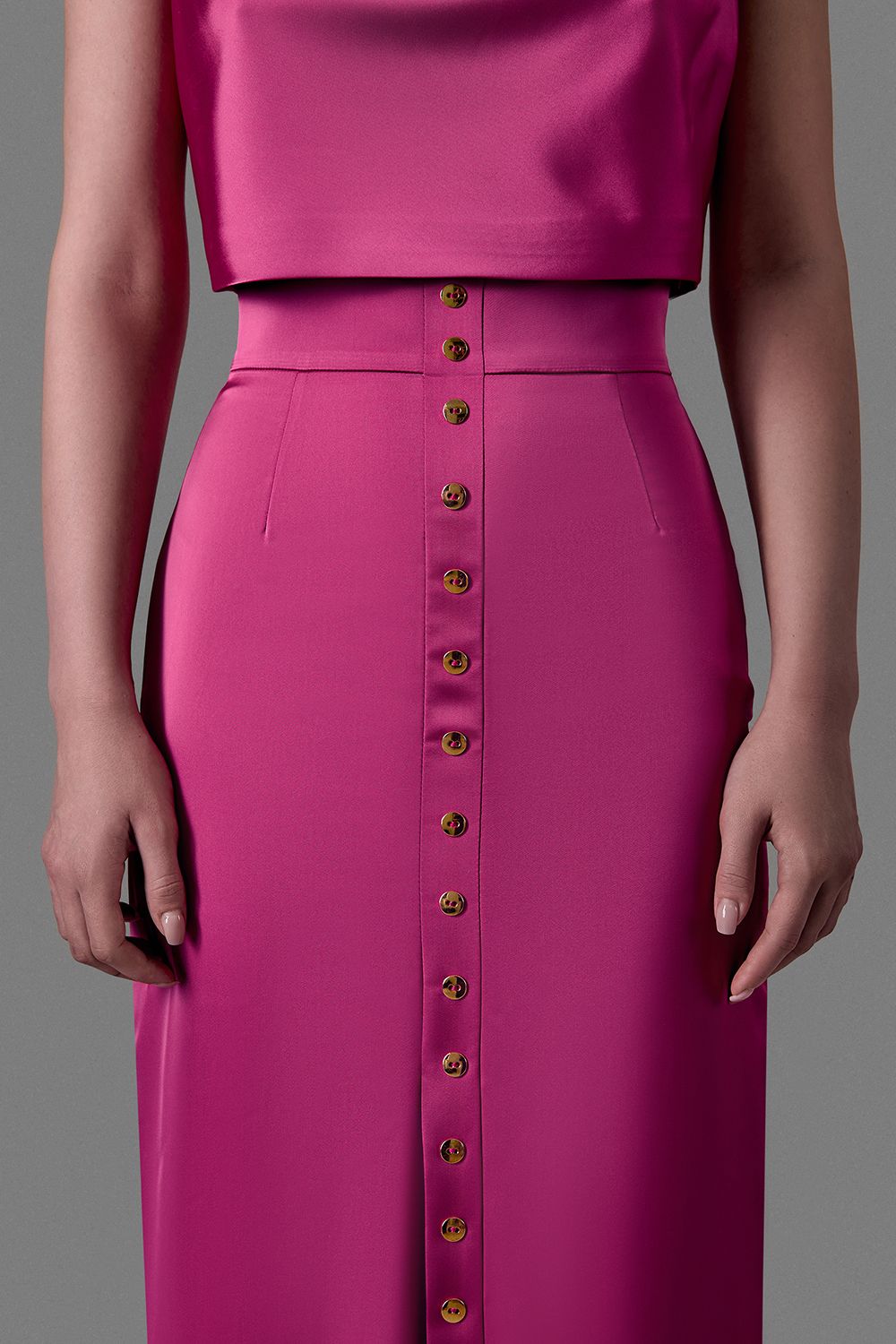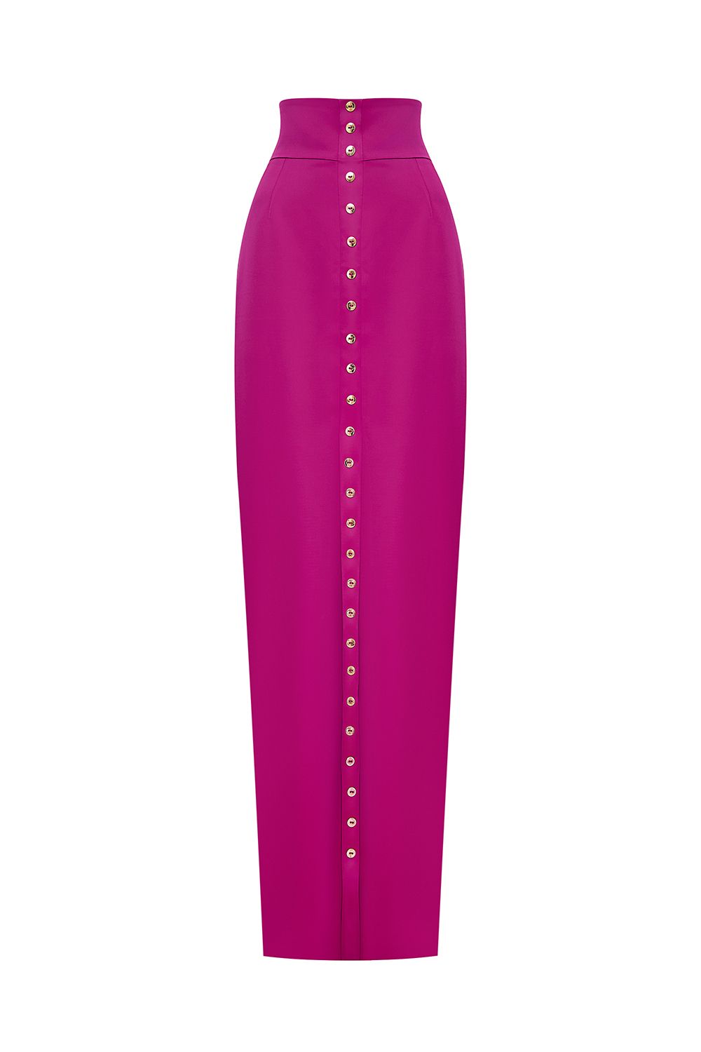 Прямая юбка макси с разрезом и золотистой линией пуговиц