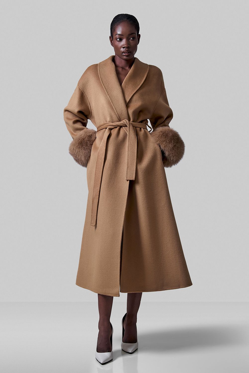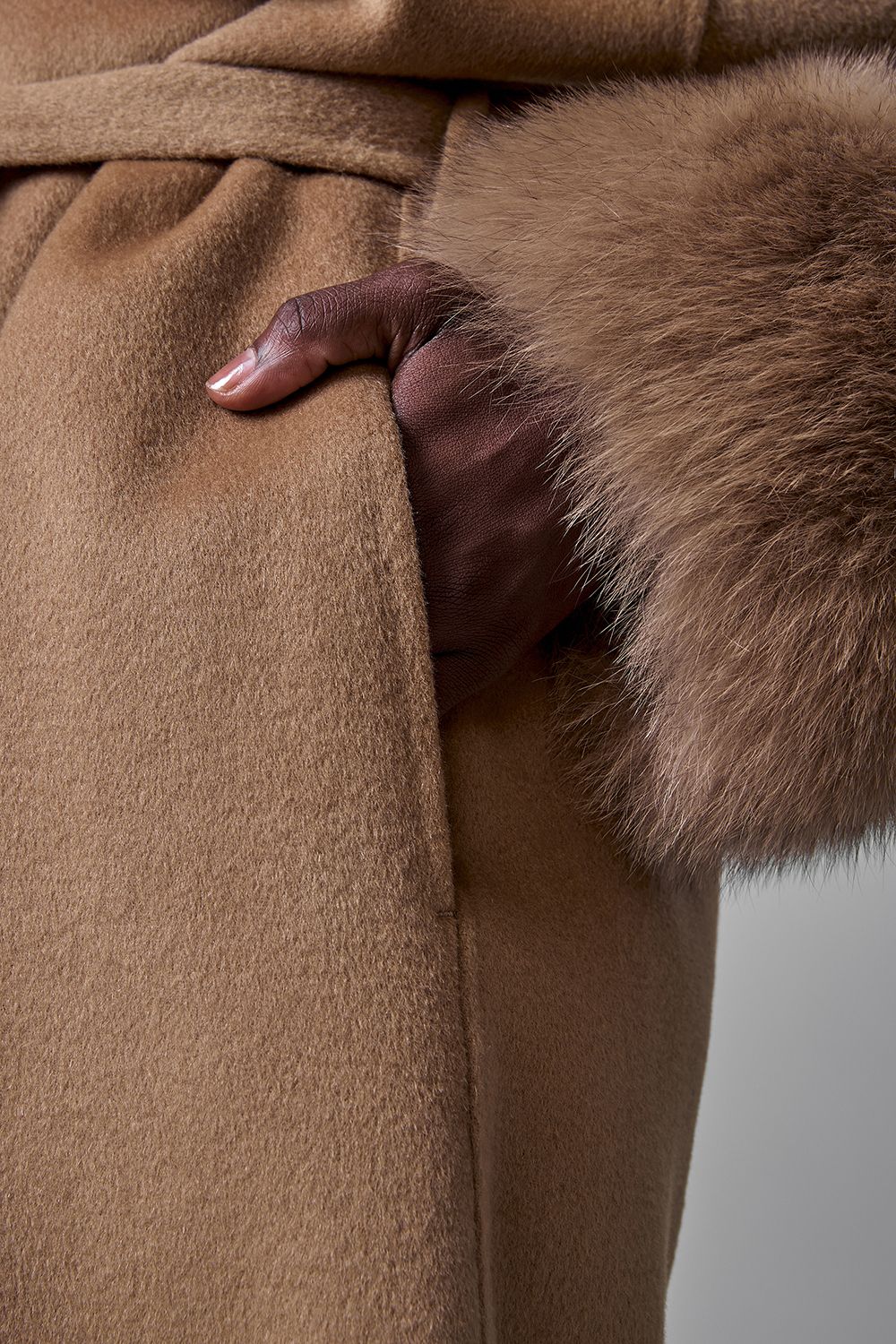 Элегантное пальто из премиальной шерсти — воплощение сдержанной роскоши и утонченного стиля. Модель прямого силуэта с акцентом на талии благодаря поясу из основной ткани. Великолепный натуральный мех лисы на манжетах придает изделию благородный акцент и визуальную теплоту. Мех съемный, что позволяет трансформировать образ в зависимости от сезона. Длина по спинке 125 см. Благодаря составу пальто подходит на температурный режим от +10 до -5 С°, в зависимости от индивидуального восприятия к воздействию холода. Состав: 100% шерсть