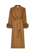 Элегантное пальто из премиальной шерсти — воплощение сдержанной роскоши и утонченного стиля. Модель прямого силуэта с акцентом на талии благодаря поясу из основной ткани. Великолепный натуральный мех лисы на манжетах придает изделию благородный акцент и визуальную теплоту. Мех съемный, что позволяет трансформировать образ в зависимости от сезона. Длина по спинке 125 см. Благодаря составу пальто подходит на температурный режим от +10 до -5 С°, в зависимости от индивидуального восприятия к воздействию холода. Состав: 100% шерсть