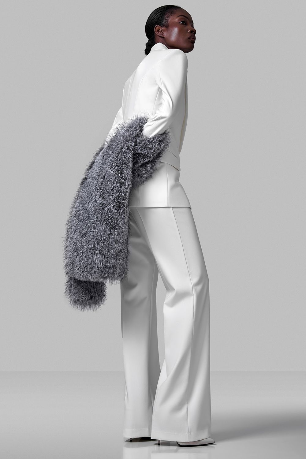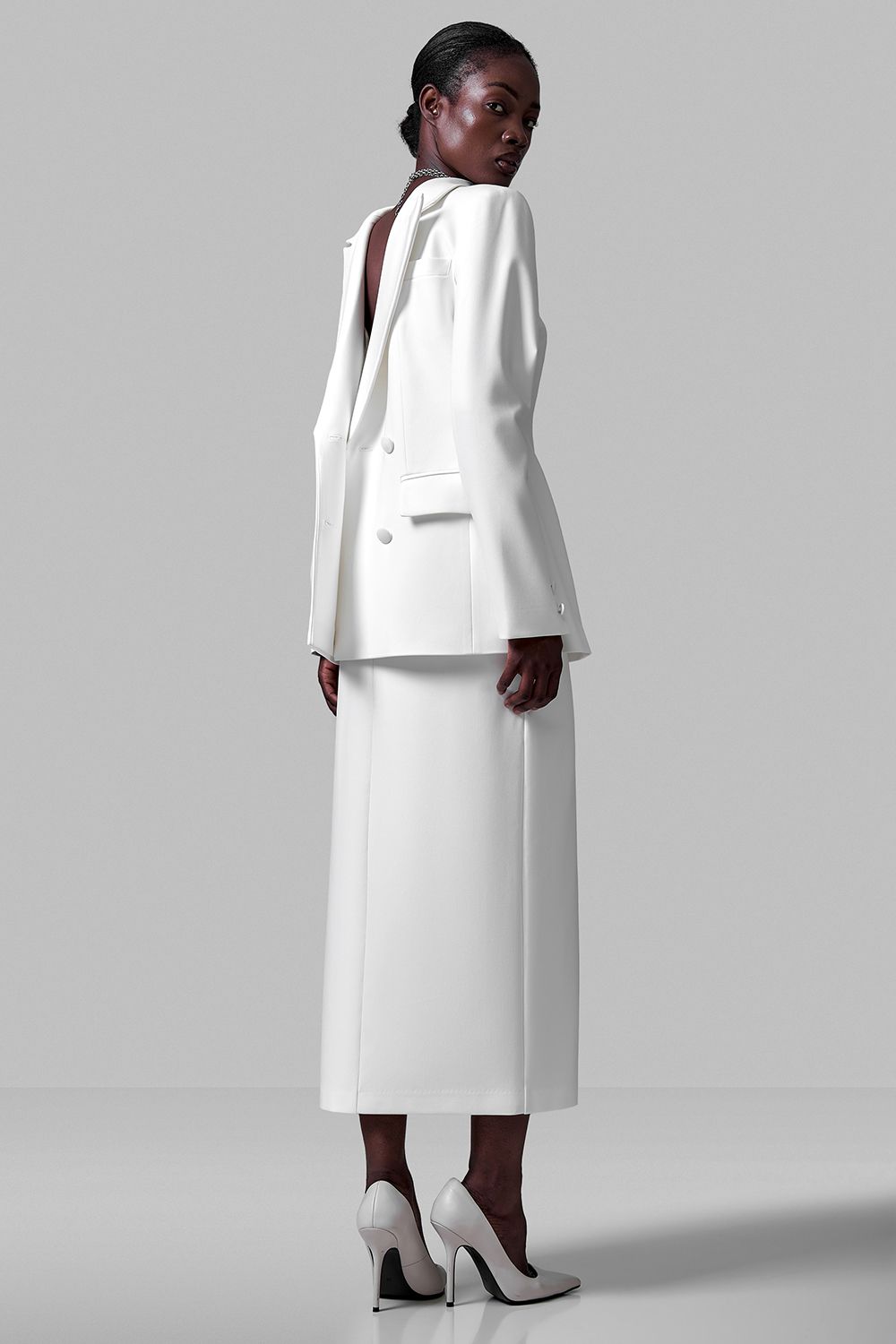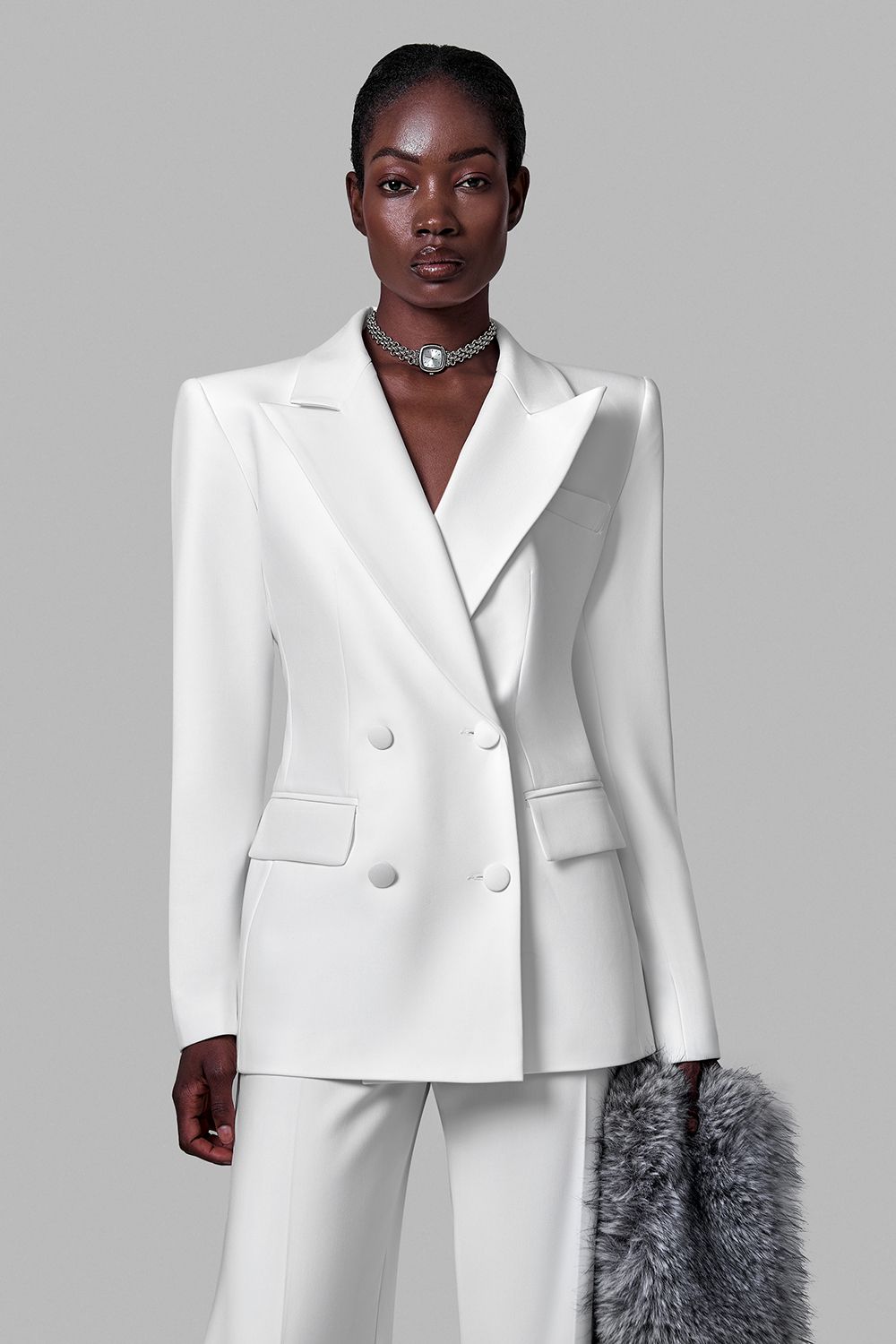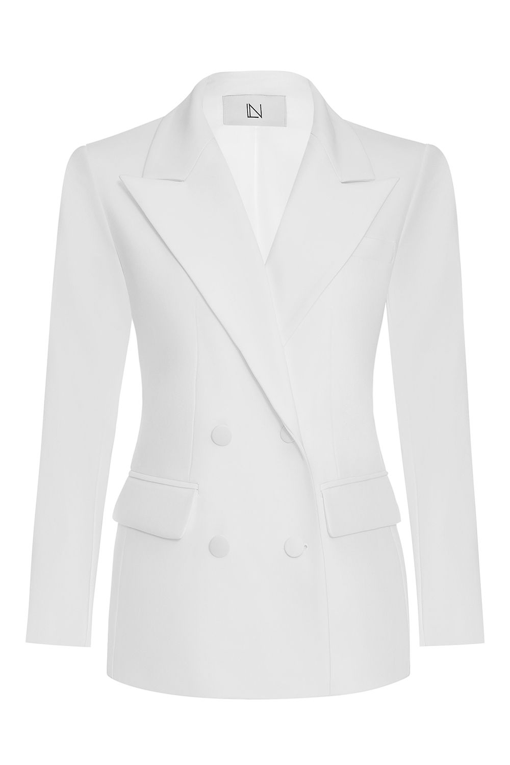 Элегантный жакет, выполнен из плотной костюмной ткани премиального качества. Модель отличается двубортной застёжкой с обтянутыми пуговицами в тон и выразительными плечами, создающими чёткий силуэт. Прямой крой, острые лацканы и прорезные клапанные карманы придают образу современную строгость и утончённость. Идеально сочетается как с классическими брюками, так и с юбками. Состав: 97% полиэстер, 3% спандекс, подкладка 95% полиэстер, 5% эластан