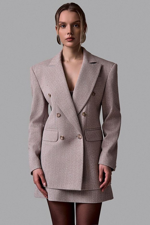 Жакет двубортный с рисунком «ёлочка»
