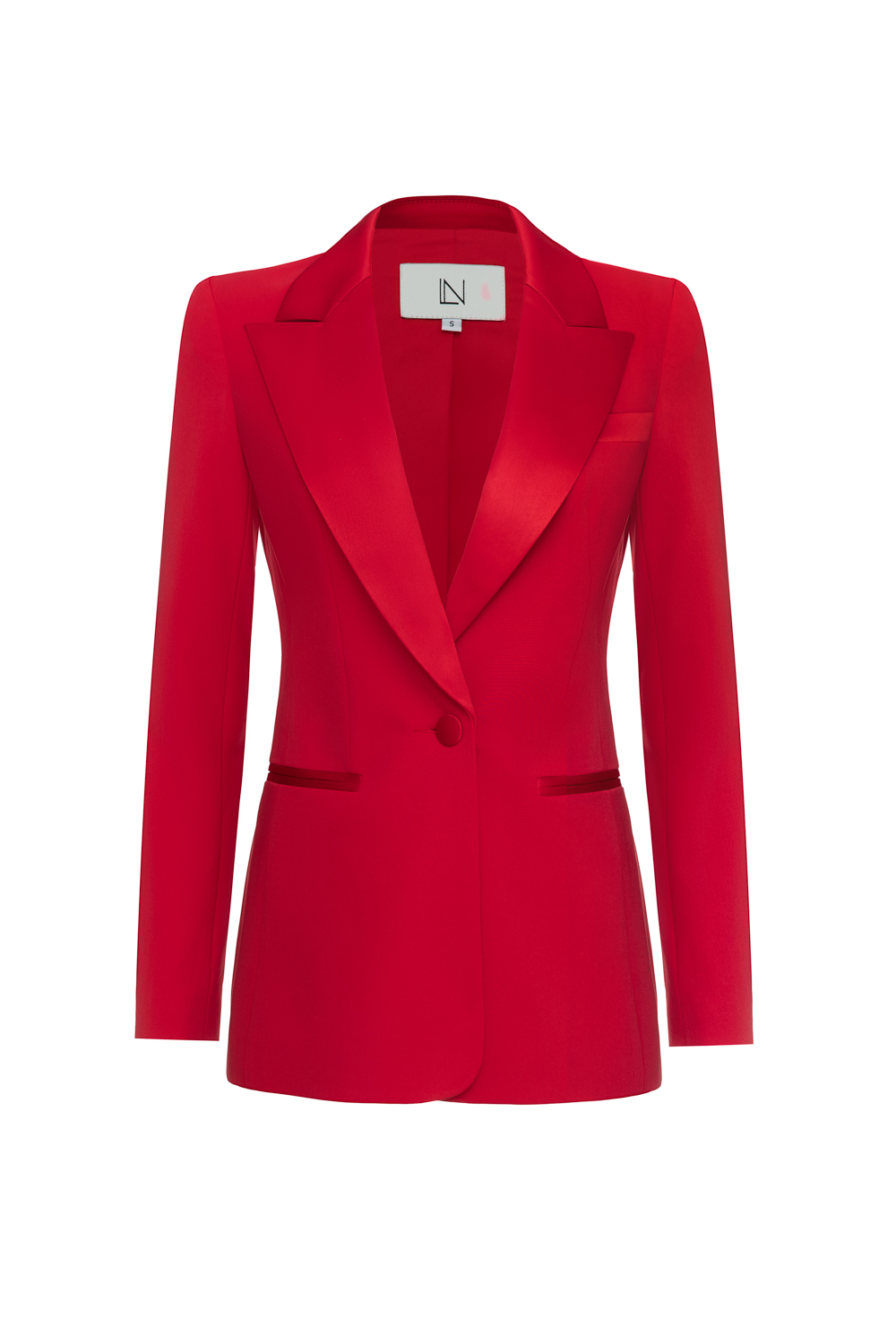 Однобортный классический смокинг с атласными лацканами. Длина по спинке 72 см. длина рукова 65 см. Состав: 63% вискоза, 32% полиэстер, 5% эластан, Подкладка 95% полиэстер, 5% эластан
