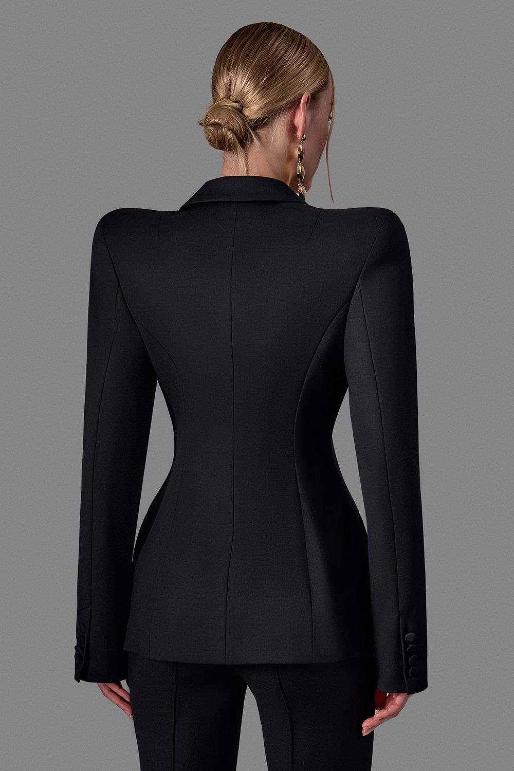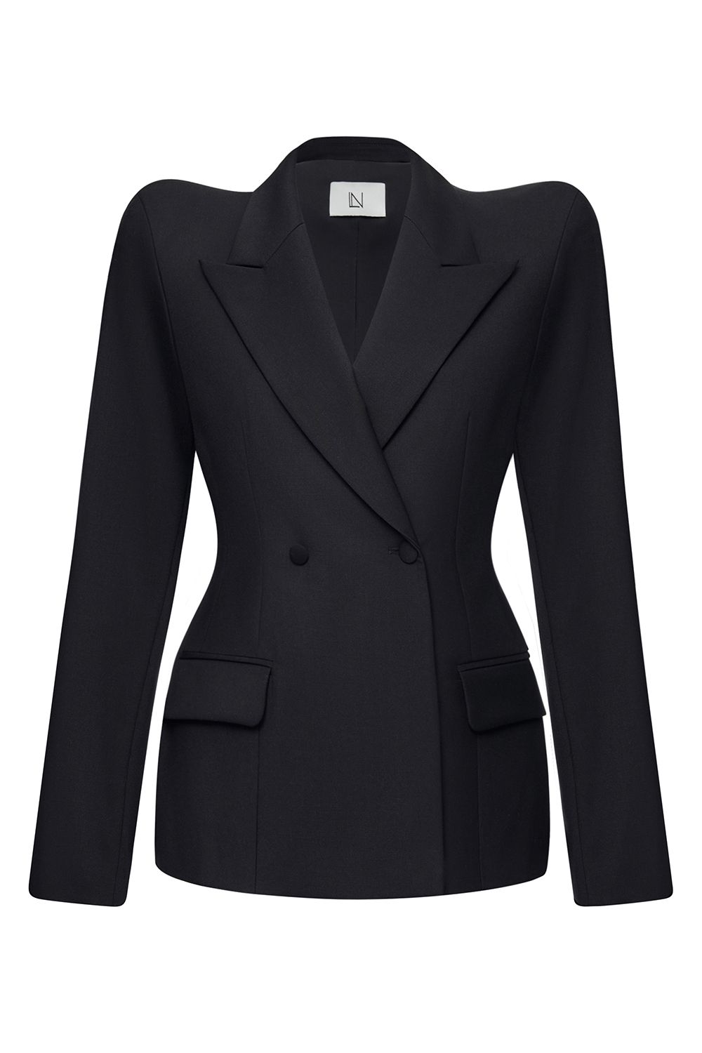 Базовый двубортный жакет приталенного кроя из плотной костюмной ткани. Аккуратно структурированные плечи и выразительные лацканы создают элегантный силуэт с акцентом на талию. Модель дополнена двумя прорезными карманами с клапанами и внутренней подкладкой в тон. Состав: 65% полиэстер, 32% вискоза, 3% спандекс, Подкладка 95% полиэстер, 5% эластан