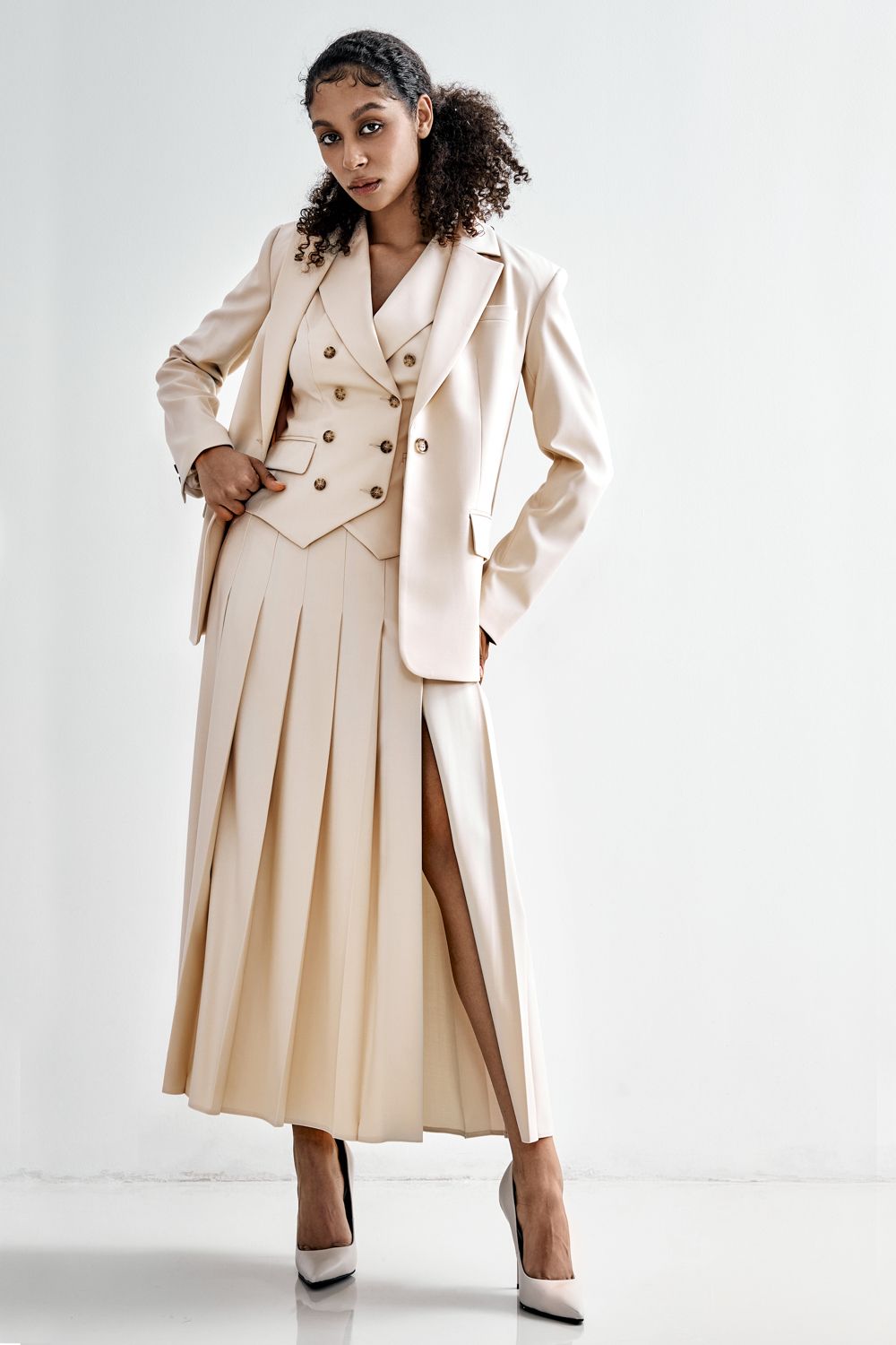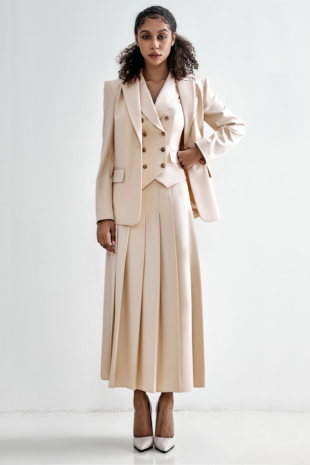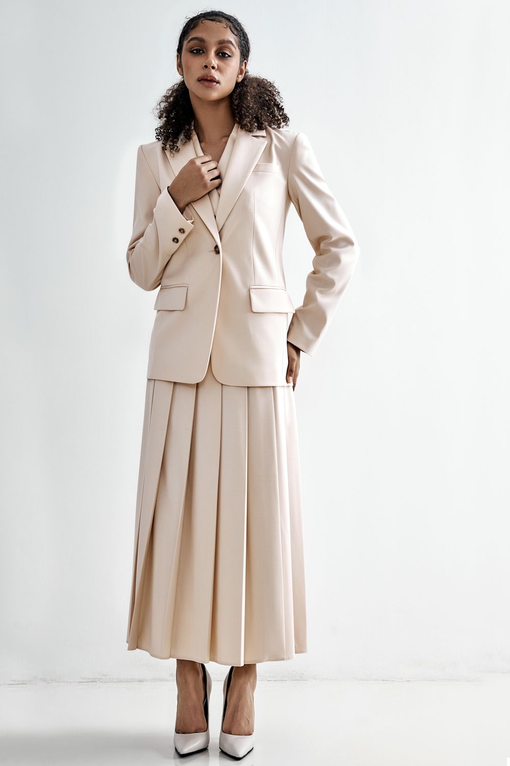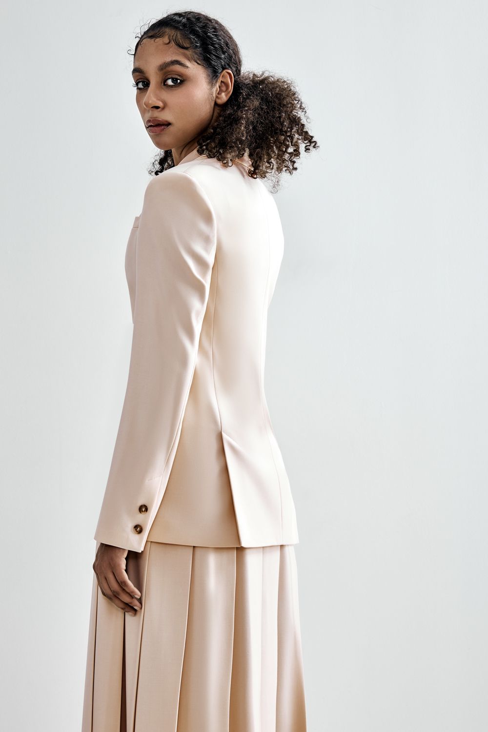 Минимализм, выведенный на новый уровень. Прямой крой, мягкая линия плеч и универсальный оттенок делают эту модель идеальной основой для капсульного гардероба. Носите с юбками, струящимися платьями или строгими брюками — он легко адаптируется под любой ритм. Состав: 65% полиэстер, 30% вискоза, 5% эластан Подкладка: 95% полиэстер, 5% эластан