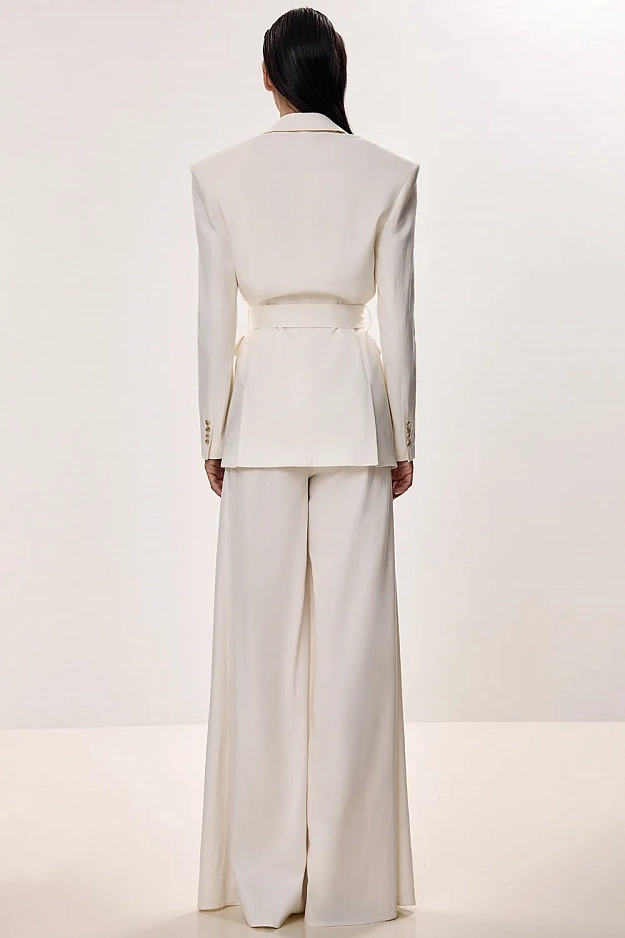 Льняной жакет миди — современная интерпретация классического tailoring, в которой природная фактура встречается с выверенным силуэтом. Благородный тёплый оттенок подчёркивает глубину ткани и делает образ выразительным без лишних акцентов. Чёткая линия плеч, двубортная застёжка и пояс формируют утончённую талию, создавая архитектурный силуэт. Лаконичный крой сохраняет баланс строгости и женственности, делая модель универсальной для разных случаев. Жакет органично вписывается как в дневной гардероб, так и в вечерние образы, раскрывая эстетику натурального льна. Состав: 50% вискоза, 47% лен, 3% спандекс; подкладка: 95% полиэстер, 5% эластан