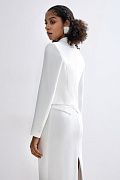 Укороченный жакет из плотного костюмного материала с матовым блеском. Модель с акцентными широкими лацканами и чёткой линией плеч. Двубортная застёжка на обтянутые пуговицы придаёт изделию утончённую завершённость. Лаконичные клапаны карманов и аккуратный декоративный кантик вдоль борта добавляют образу архитектурности. Состав: 71% полиэстер, 23% вискоза, 6% эластан, Подклад 97% полиэстер 3% эластан