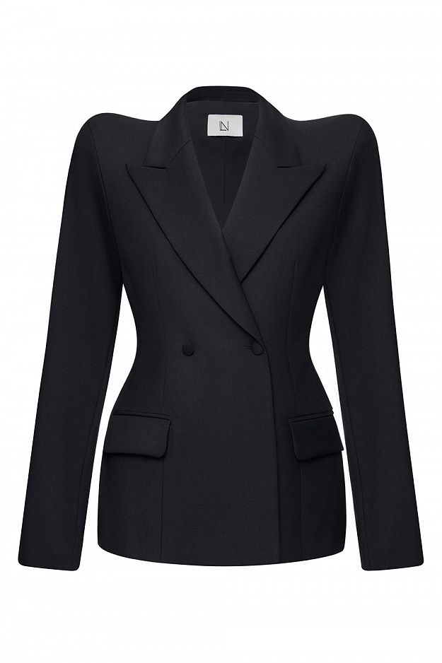 Жакет с острыми лацканами и выразительной линией плеч