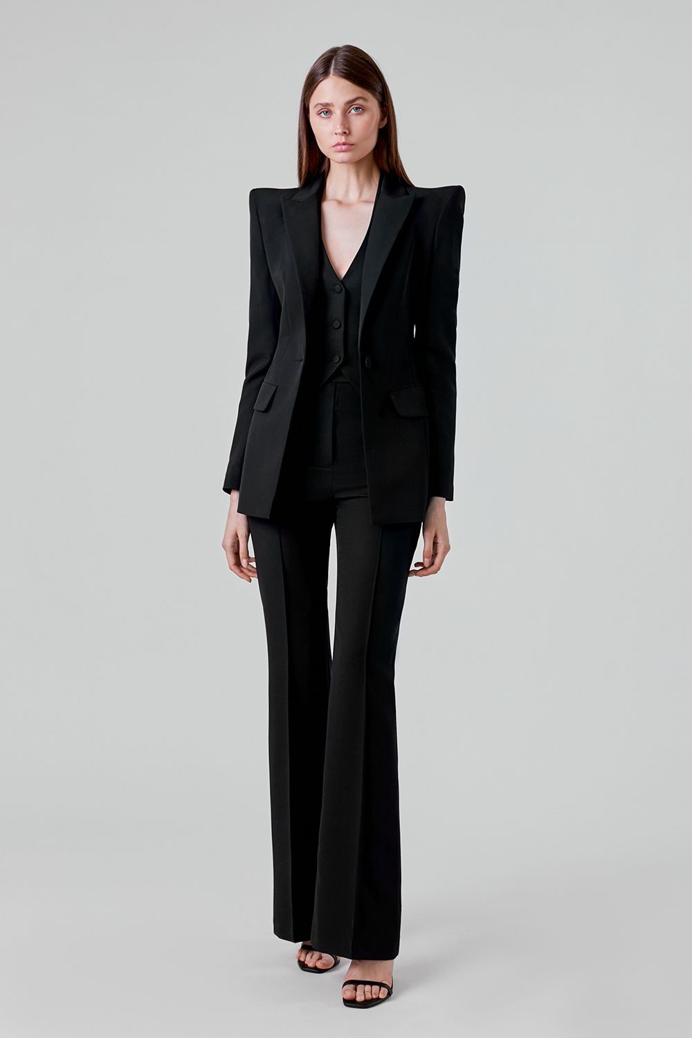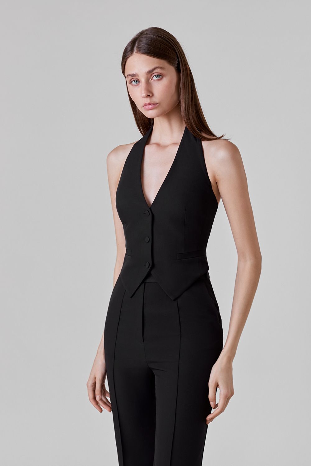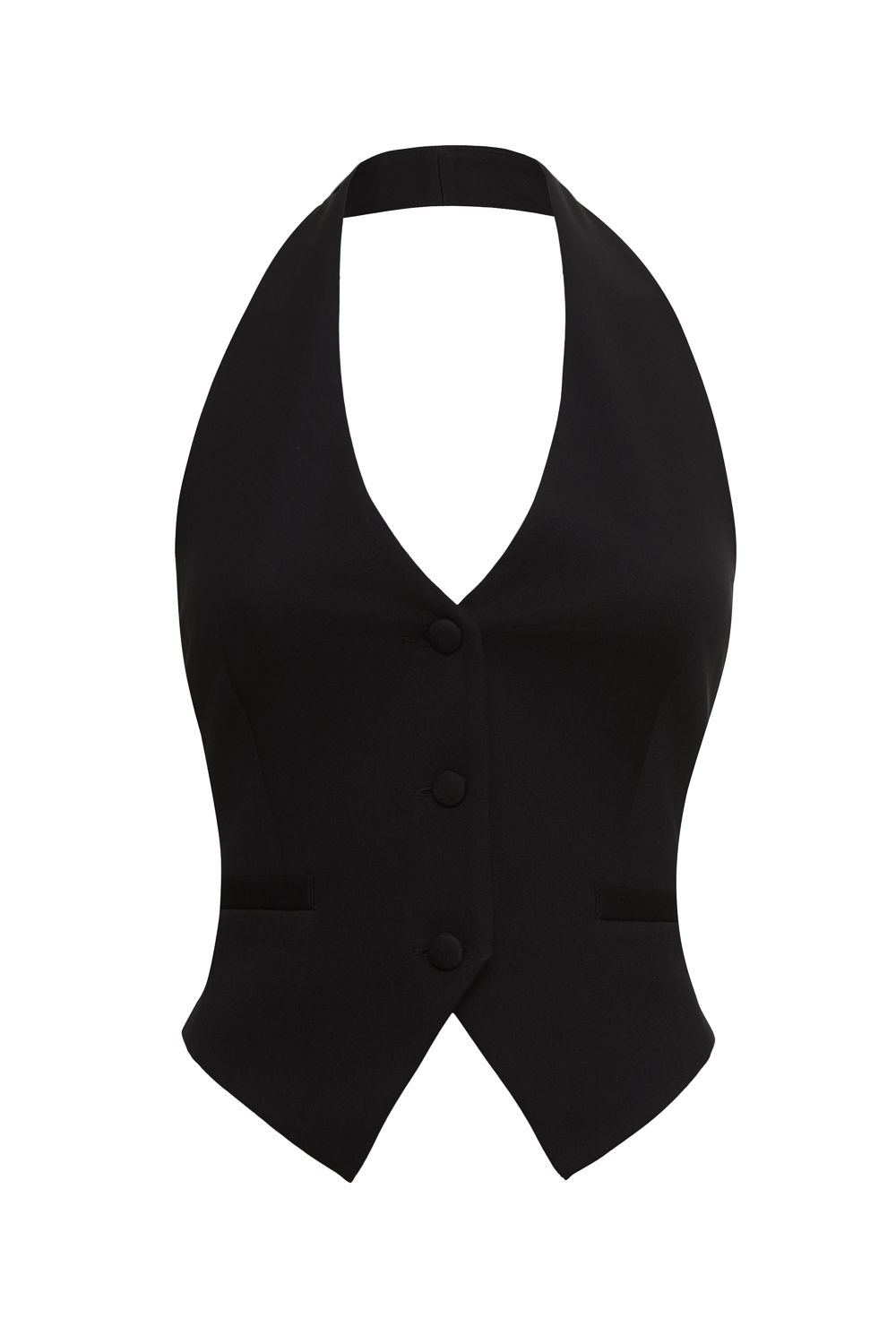 Классический жилет приталенного кроя с открытой спиной. Состав: 71% полиэстер, 23% вискоза, 6% эластан. Подкладка: 95% полиэстер 5% эластан.