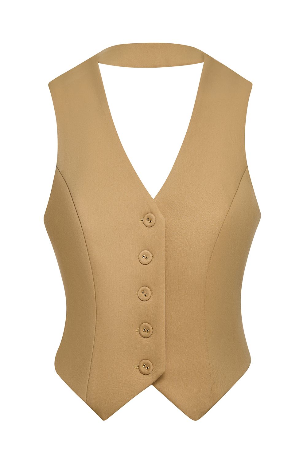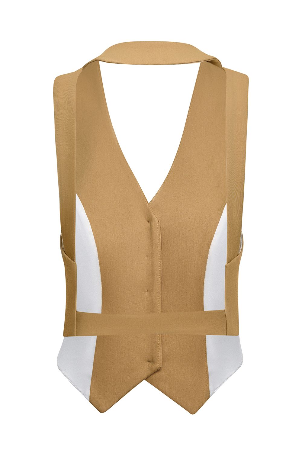 Жилет, выполненный из высококачественной ткани, имеет классический V-образный вырез, который подчеркивает линию шеи и ключиц.Он застегивается на пять пуговиц, создавая аккуратный и строгий силуэт. Состав: 63% вискоза, 32% полиэстер, 5% эластан, Подкладка 95% полиэстер, 5% эластан